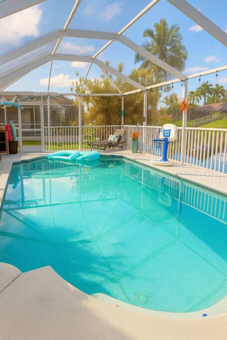 Peaceful quiet Pelican neighborhood- central to everything! Minutes from Sunsplash waterpark, Cape Coral Beach, and Tarpon Point Marina. 25 minutes to Fort Myers Beach and 30 minutes to Sanibel Island.🏝️